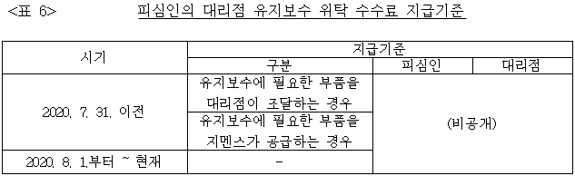 - 피심인들은 대리점이 '온콜’ 장비에 대해서 유지보수서비스를 수행한 경우에도 같은 기준으로 유지보수 수수료를 지급하였다. [본문으로]