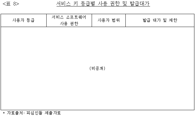 20 서비스 키 등급에 따른 사용권한은 구체적으로 아래 <표 8> 기재와 같다.